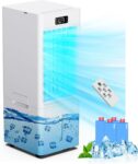 Features a powerful honeycomb waterfall system that cools air using ice-cold water, with both a control panel and remote for convenient operation.