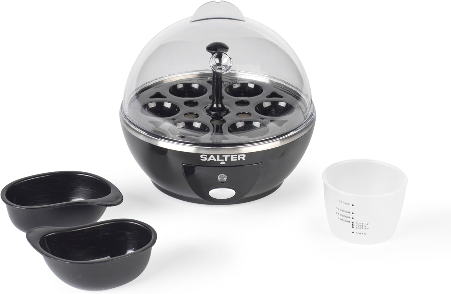 Holds up to 6 eggs at once.Adjustable settings for soft, medium, or hard boiled.